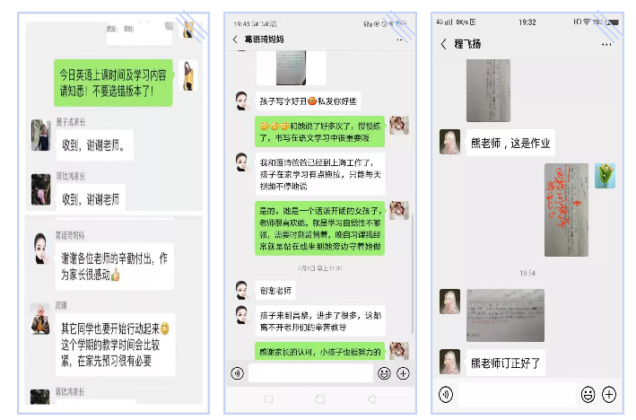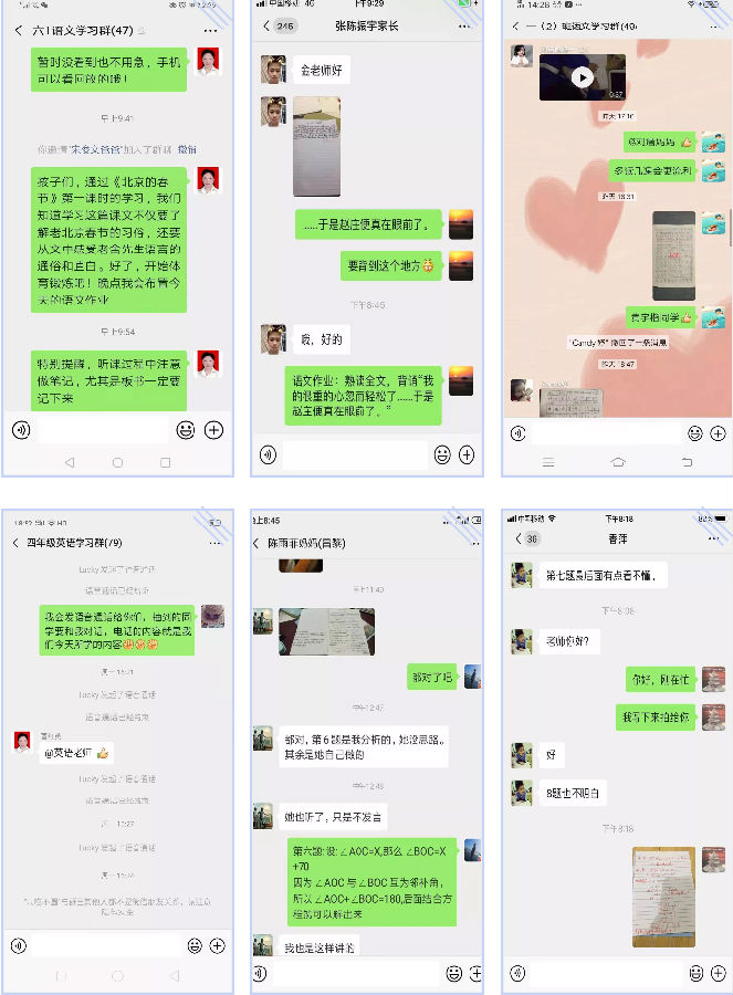 課程有研、有講還有糾,老師們通過微信群、QQ群,釘釘?shù)确绞讲贾米鳂I(yè)并批改,讓學生在不僅學還能練!同學們在家長的陪伴下 ,完成了視頻學習,線上作業(yè)和查看教師批閱情況反饋。從目前來看,這種學習方式在同心抗疫的大背景下無疑是最有效。 家長對于學校的工作安排不僅理解,更是十分的配合與支持!