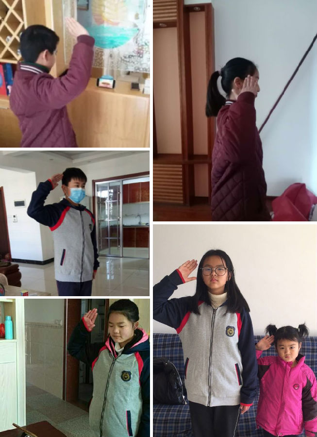 看著一個個穿戴整齊的同學們,他們胸前佩戴紅領(lǐng)巾在家面向直播中的國旗肅立,聽指揮高唱國歌,少先隊員敬隊禮。相信因為疫情開學遇到了延遲,但是我們對祖國的愛從不延遲!
