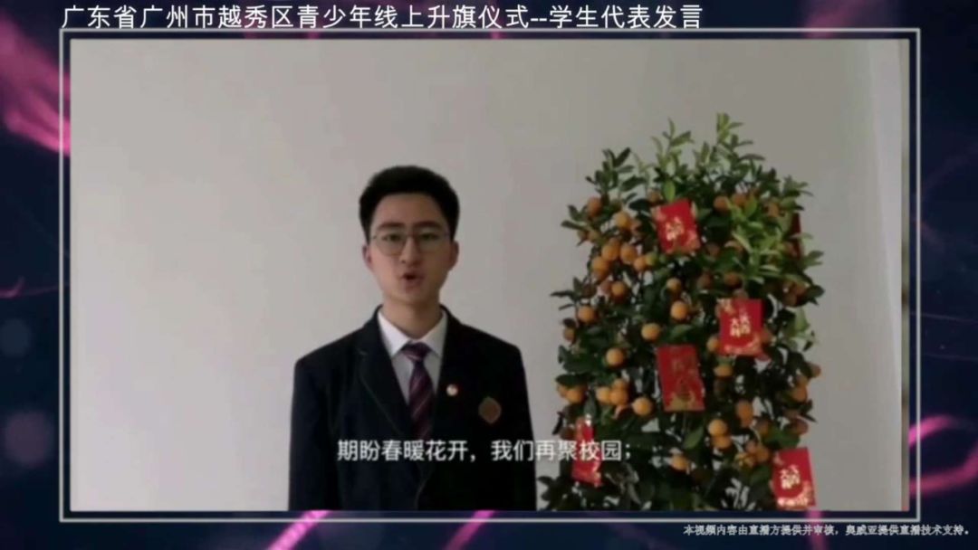 2月18日,全體師生在線上,共同觀看了廣州越秀區(qū)線上升旗儀式,雖然體驗不一樣,但這份情感是更濃了。