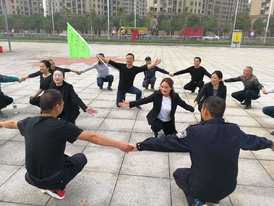 10月30日,君健物業(yè)公司組織各項目管理處文員、樓管、水電維修、保安和職能部門負(fù)責(zé)人等84名員工在宜陽森林公園進(jìn)行團(tuán)隊拓展訓(xùn)練?;顒佑晒就宋檐娙藫?dān)任教官,設(shè)有穿越電網(wǎng)、同心鼓、呼啦圈過山車、獨(dú)木橋排序、拔河五項活動,分四個小組展開激烈角逐比拼。