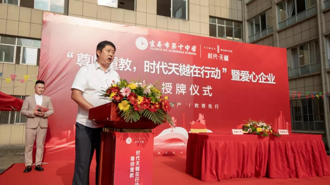 儀式開始前,宜春十中籌備組組長萬啟云代表校方向時代天樾項目領(lǐng)導(dǎo)及來賓致以熱烈的歡迎,并對企業(yè)的善舉表示感謝,他介紹了學(xué)校辦學(xué)以來的基本情況,學(xué)校的順利發(fā)展得到了社會各界的真誠關(guān)心與幫助,全體十中人定會將社會各界給予的關(guān)心與幫助化為力量,勠力同心,以百年大黨浸潤的信念品格,腳踏實地辦好宜春十中。